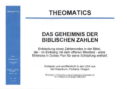 Wollen Sie mehr über Theomatics wissen? In deutscher Sprache gibt es eine Präsentation als zusammenfassende Darstellung von Theomatics mit ausgesuchten Beispielen. Die Präsentation umfasst 155 Seiten.